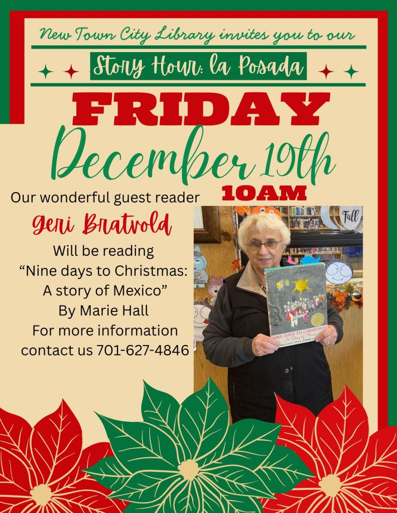 October 24, 2025October 24, 2025 newtowncitylibrary Story Hour/La Posada with Guest Reader Geri Bratvold December 19th 2025 Please see attached flyer for more information. Share: Click to email a link to a friend (Opens in new window) Email Tweet Click to print (Opens in new window) Print Share on TumblrLike Loading... Related
